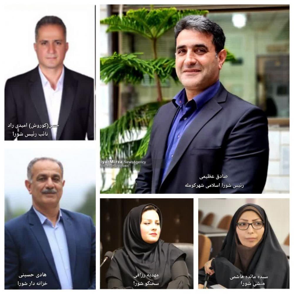 در انتخابات مذکور صادق عظیمی با اکثریت آراء به عنوان رئیس شورای اسلامی شهر کومله معرفی و حسن (کوروش) امیدی راد به عنوان نائب رئیس این شورا انتخاب شد.
